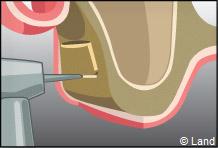 L’intervention est réalisée sous anesthésie locale. Dans cet exemple le forage intéresse la paroi latérale du sinus.